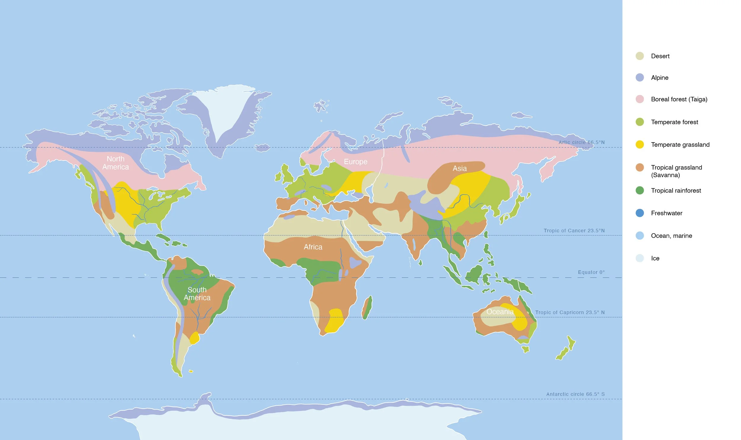 Map representing the main natural biomes